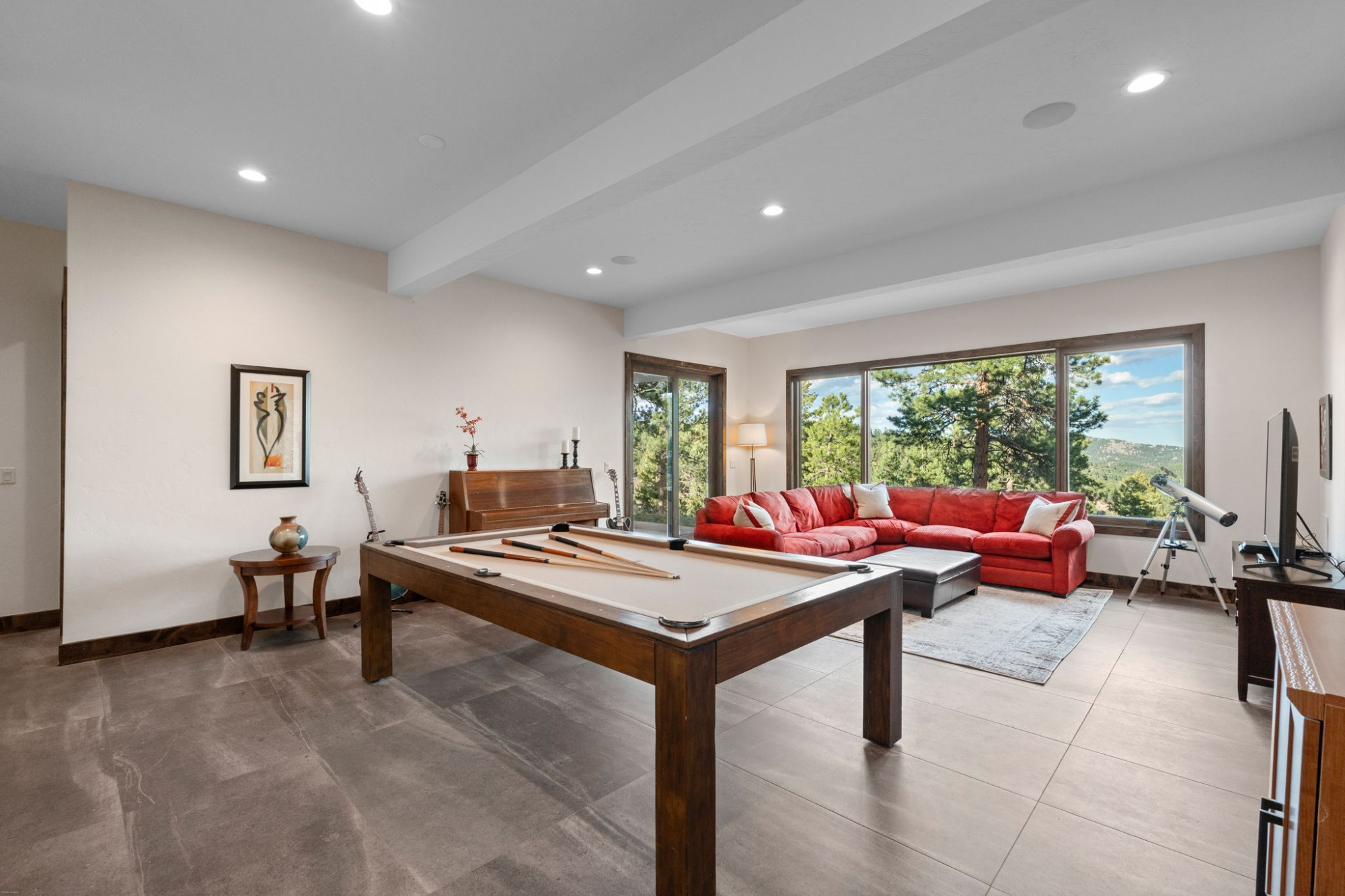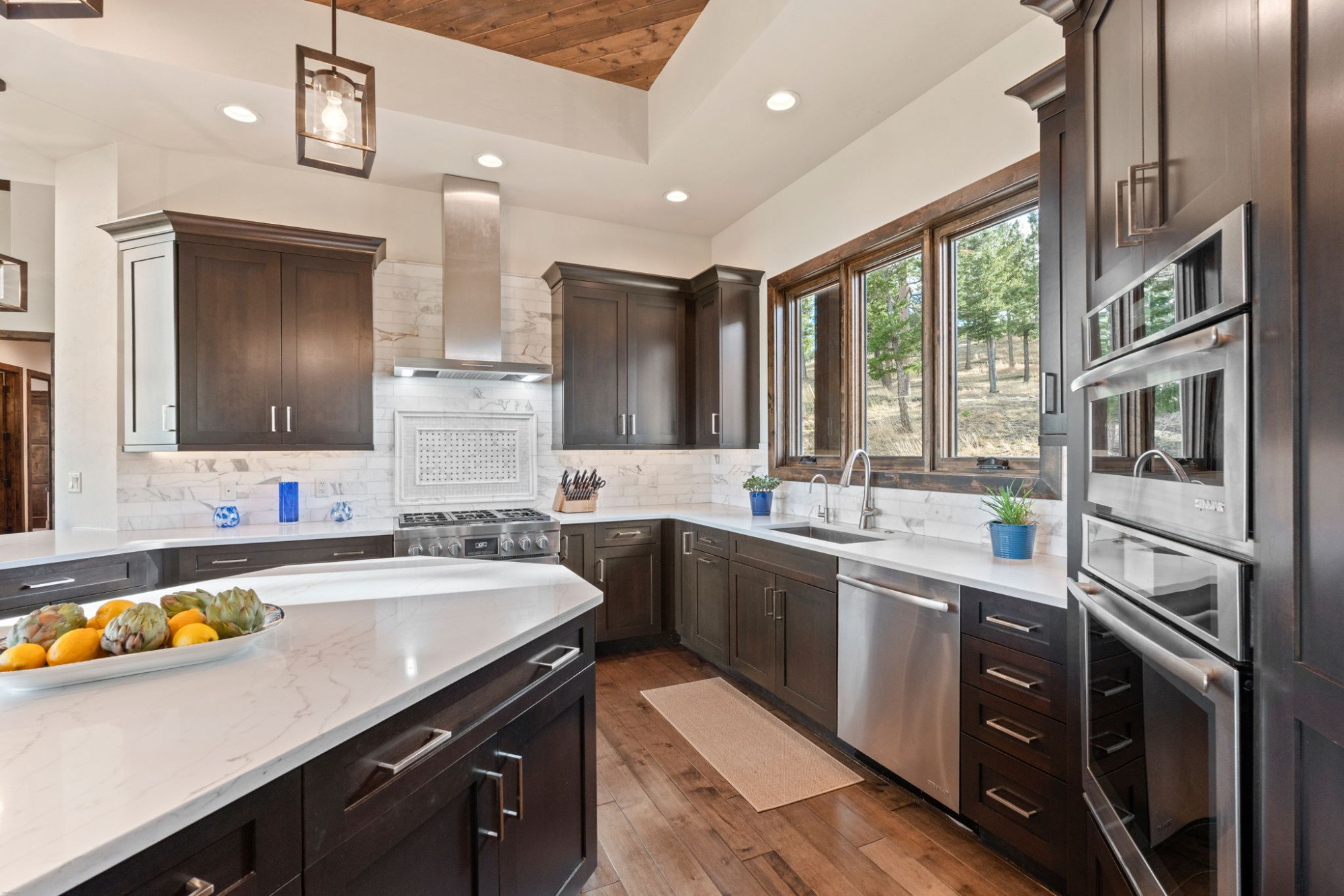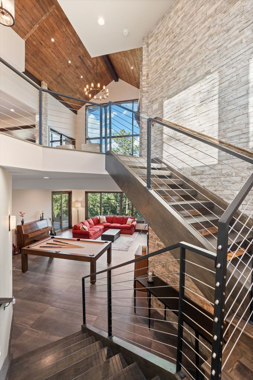 They knew exactly what they wanted when they set out to build their dream home in 2018. Find land with views. Find land with privacy. Find land close enough to Evergreen that life stays convenient, but far enough that it feels like a true mountain retreat. They found all three on 10 acres in North Evergreen. The design process became an exercise in capturing those views from every angle. The kitchen sink looks directly at Mt. Blue Sky. The garage has mountain views. Even the basement opens to the forest. They chose an oversized folding glass patio door in the kitchen to erase the line between inside and outside, connecting the dining area to a covered deck with a gas fireplace where they could entertain year-round. Natural materials mattered. Stone accents throughout the house. An oversized fireplace in the family room. Radiant floor heating under every surface. They left most windows without coverings because the nearest neighbor stays largely out of sight and the forest provides all the privacy they need. They built a complete apartment into the walkout basement with its own full kitchen, anticipating visits from extended family and out-of-town guests who would want their own space. The 4-car garage went oversized to handle larger vehicles. An automatic natural gas generator went in to keep essential systems running during power outages. The natural landscape meant no lawn to mow and the ability to just enjoy their own property and forest. What they created was exactly what they set out to find—a mountain retreat that never stops feeling special, now ready for someone else to call home.